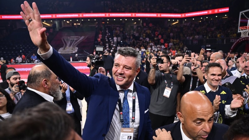Mücadelenin bitiş düdüğüyle birlikte parkeye inen Fenerbahçe Başkanı Sadettin Saran, oyuncuları kutladı.