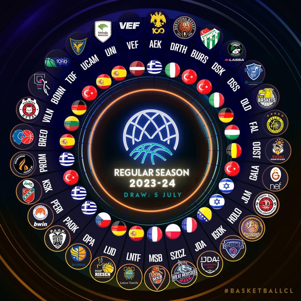 Basketbol FIBA Şampiyonlar Ligi'nin 2023-2024 sezonunda mücadele edecek takımlar belli oldu.