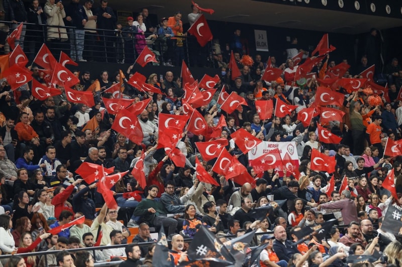 Maç öncesinde salona gelen vatandaşlara Türk bayrağı hediye edilirken, karşılaşma sonunda yarı finale çıkma başarısı gösteren Mersin ekibi oyuncuları ve taraftarlar büyük sevinç yaşadı.
