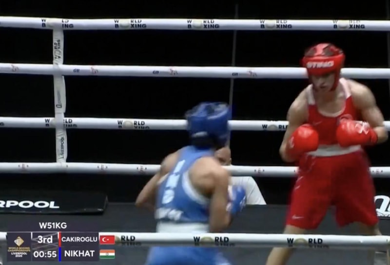 Dünya Boks Şampiyonası çeyrek final maçında Buse Naz Çakıroğlu, Hindistanlı Zareen Nikhat'ı ile karşı karşıya geldi.