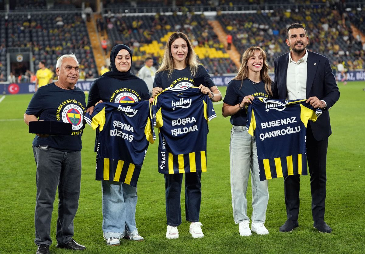 İngiltere'nin Liverpool kentinde yapılan Dünya Boks Şampiyonası'nda kadınlar 51 kiloda gümüş madalya kazanan Buse Naz Çakıroğlu ve 75 kiloda gümüş madalyanın sahibi olan Büşra Işıldar ile 80 kiloda bronz madalyayı boynuna takın Şeyma Düztaş, Fenerbahçe'nin Alanyaspor maçı öncesi taraftarın önüne çıktı.