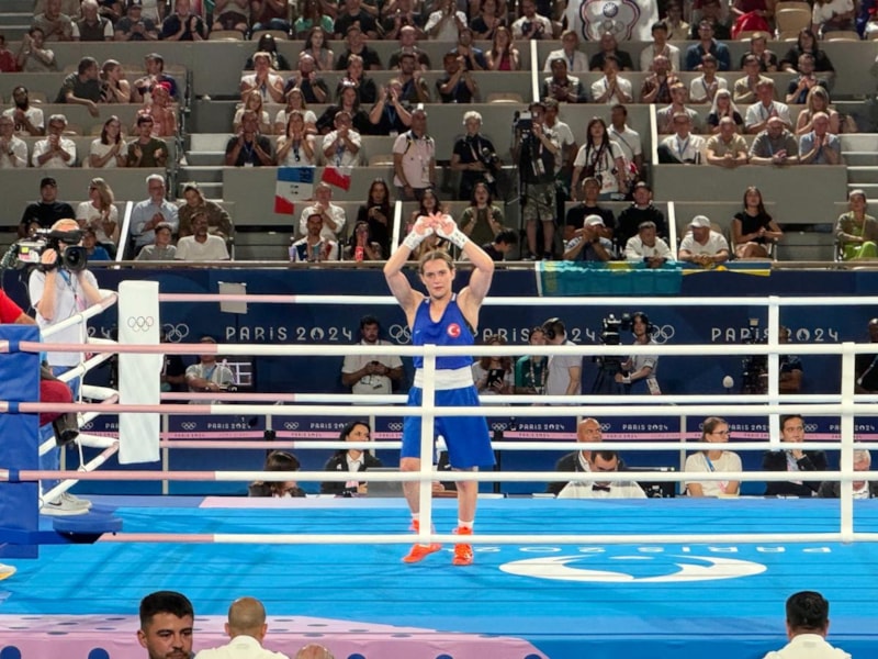 Fransa'nın başkenti Paris'teki Philippe-Chatrier Kortu'nda boks branşının kadınlar 57 kilo yarı final mücadelesi yapıldı.