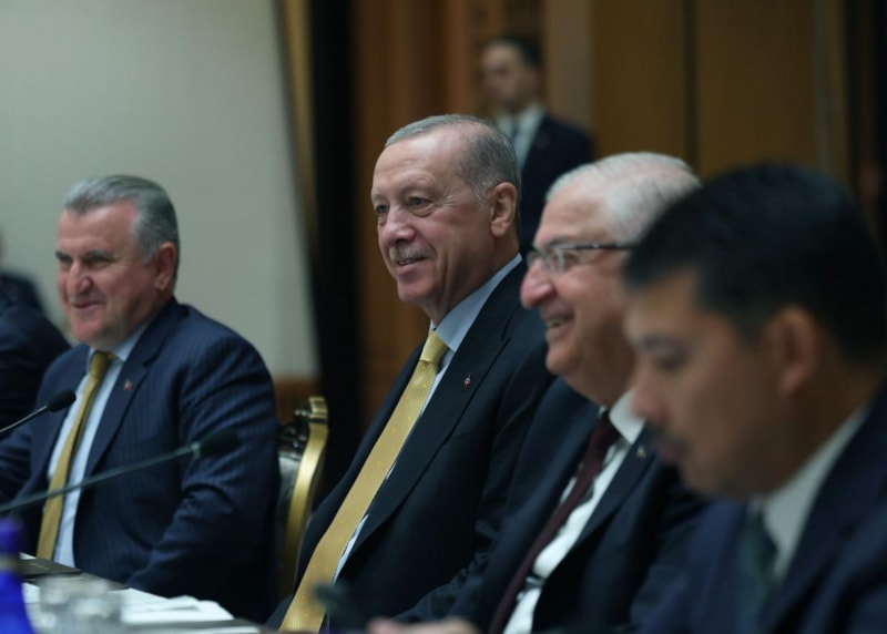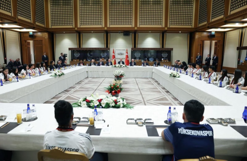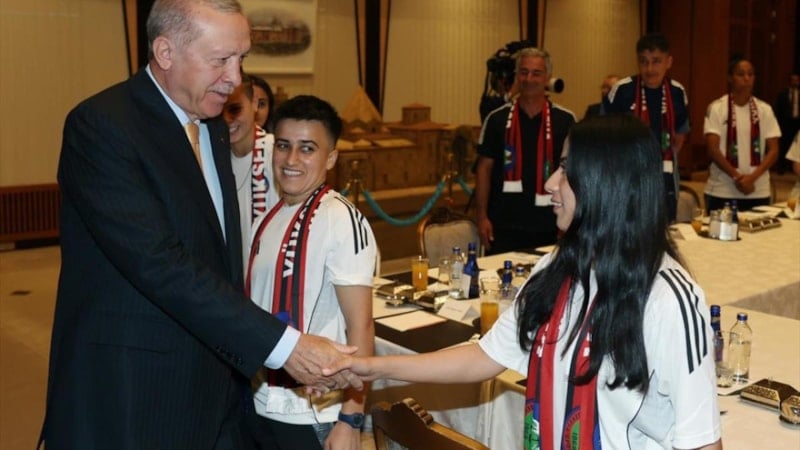 Cumhurbaşkanı Erdoğan, 8 yıl önce kurulan ve kısa sürede başarılara imza atan Yüksekovaspor Kadın Futbol Takımı'nı Cumhurbaşkanlığı Külliyesi'nde kabul etti.