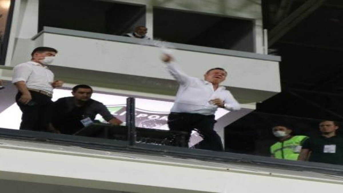 Buna tepki gösteren Denizlispor Başkanı Ali Çetin sahaya su şişesi fırlattı.