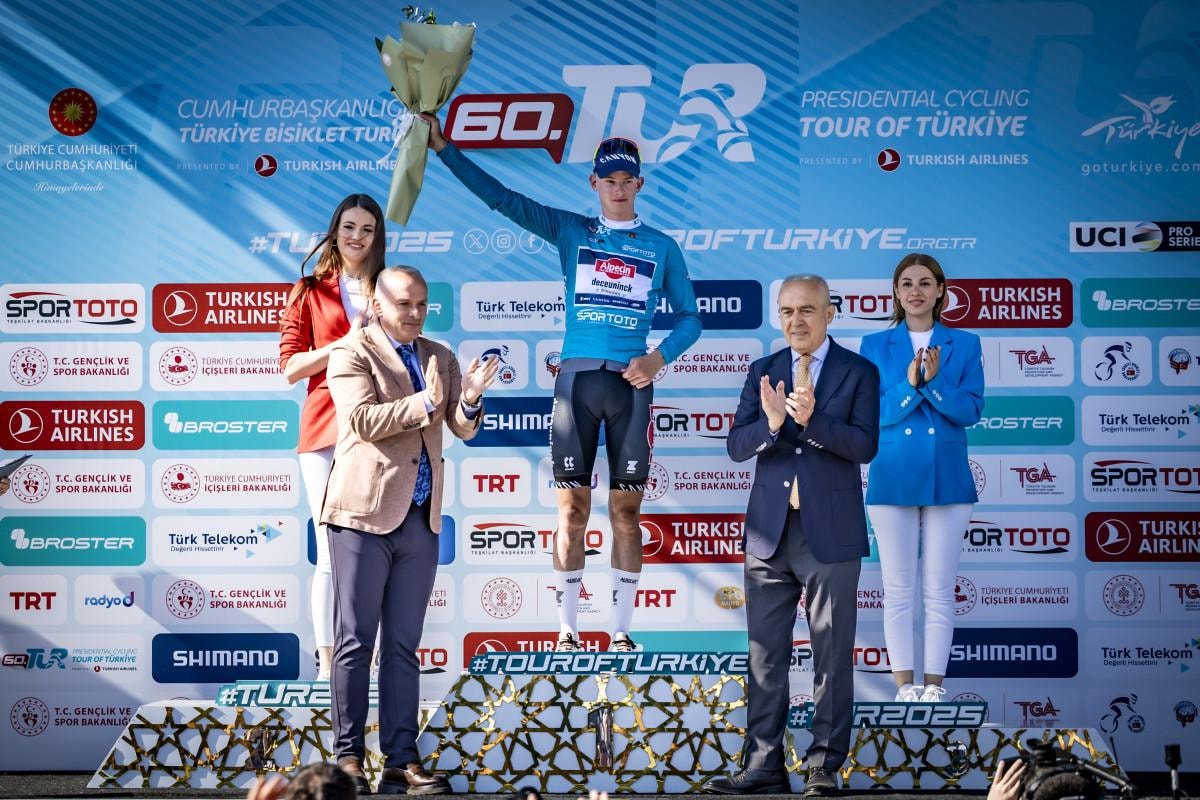 Yarışta turkuaz mayoyu kazanan Tibor Del Grosso'ya mayoyu Türkiye Bisiklet Federasyonu Başkanı Emin Müftüoğlu ve Antalya Gençlik ve Spor İl Müdürü Yavuz Gürhan verdi.