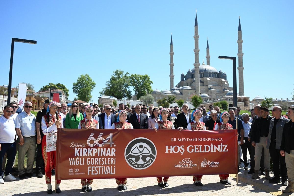 664. Tarihi Kırkpınar Yağlı Güreşleri Ağa Karşılama Töreni, Edirne'de coşkulu bir atmosferde gerçekleştirildi.