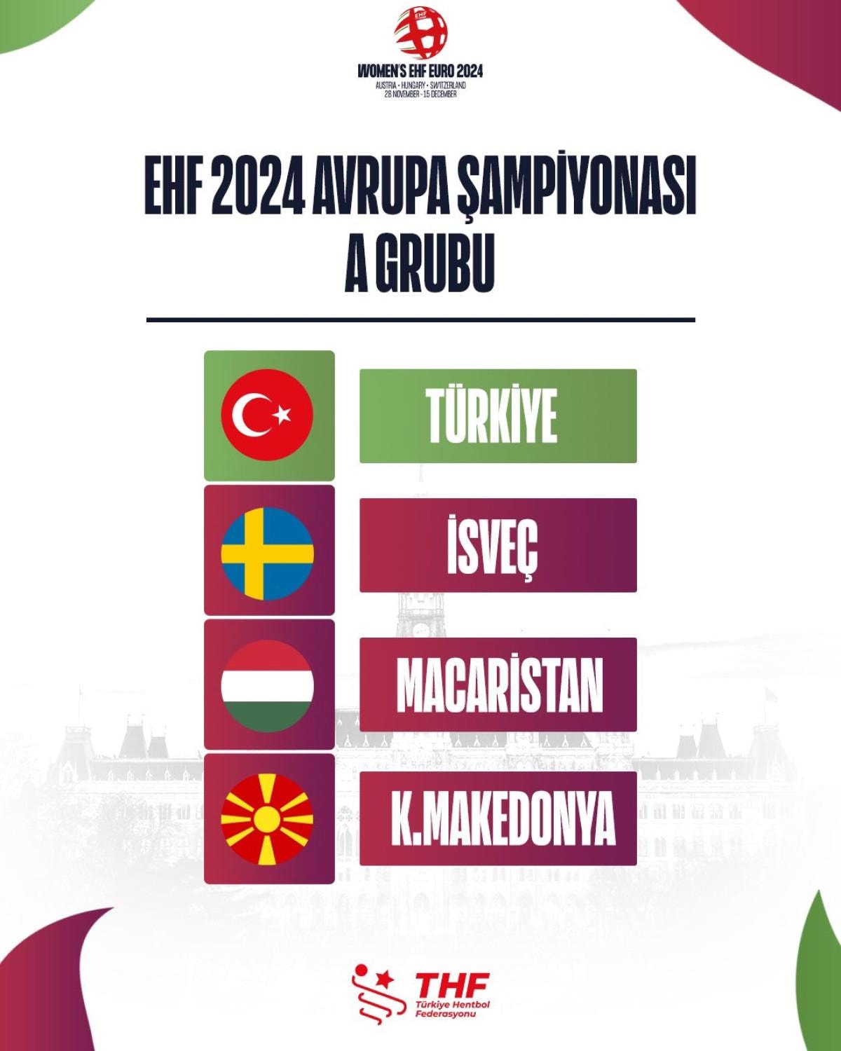 Viyana'daki EHF merkezinde yapılan kura çekimi sonucu Türkiye, A Grubu'nda İsveç, Macaristan ve Kuzey Makedonya ile eşleşti.