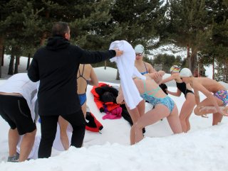 Erzurum Palandöken'de Avrupa Şampiyonası'na hazırlanan Alman Yüzme Milli Takımı, kamplarının keyfini karda yüzerek çıkartıyor.