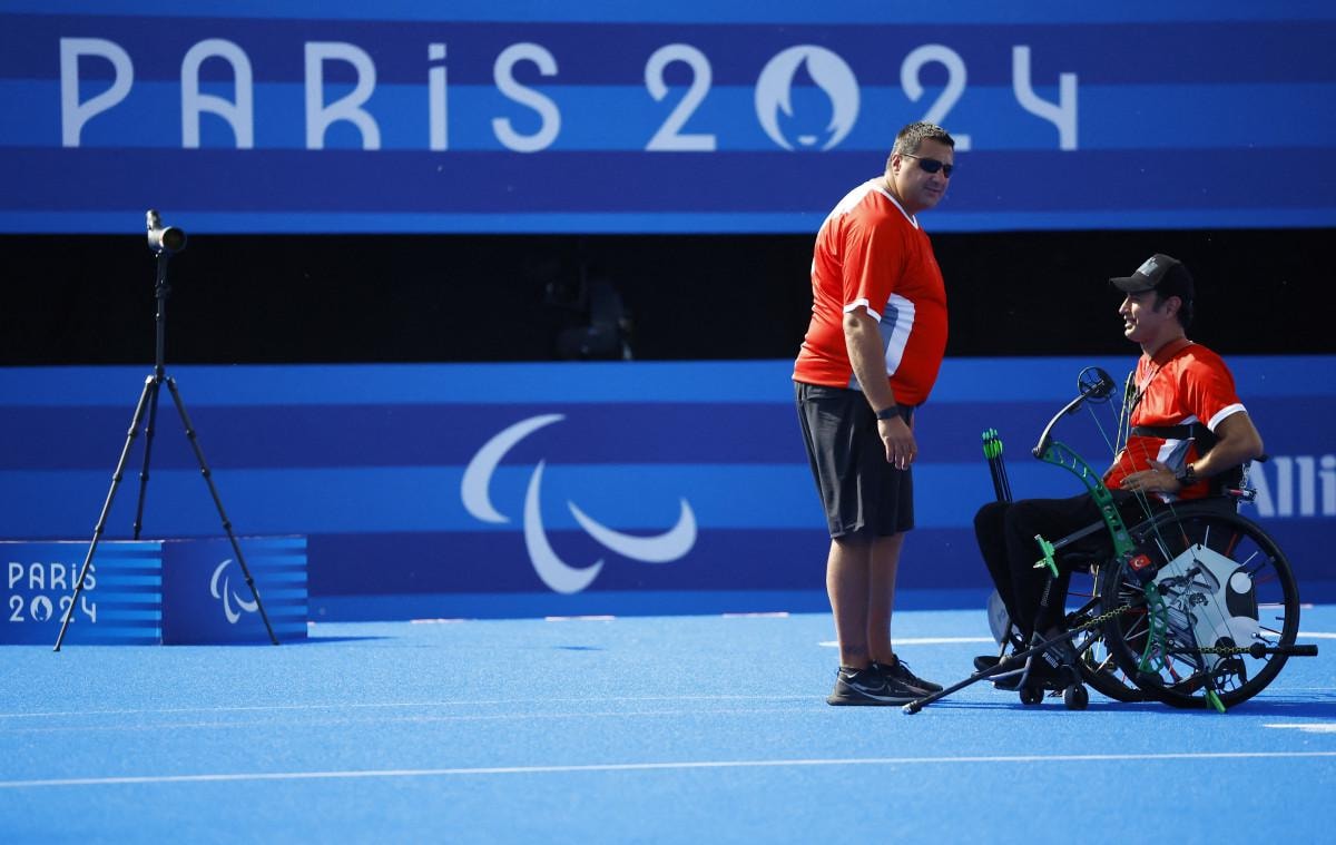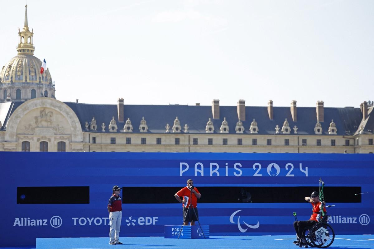 Milli sporcu Bahattin Hekimoğlu, Invalides'teki para okçuluk müsabakalarında erkekler W1 müsabakalarında İtalya'dan Paolo Tonon ile karşılaştı.