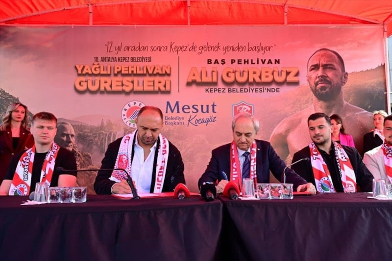 Kepez Belediyespor ile anlaşan başpehlivan Ali Gürbüz için imza töreni düzenlendi.