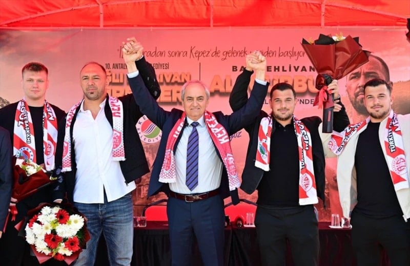 Tarihi Kırkpınar Yağlı Güreşleri'nde 4 kez başpehlivanlığı kazanan Ali Gürbüz, belediye önünde gerçekleştirilen törende, Kepez Belediyespor sporcusu olduğu için yaşadığı mutluluğu dile getirdi.