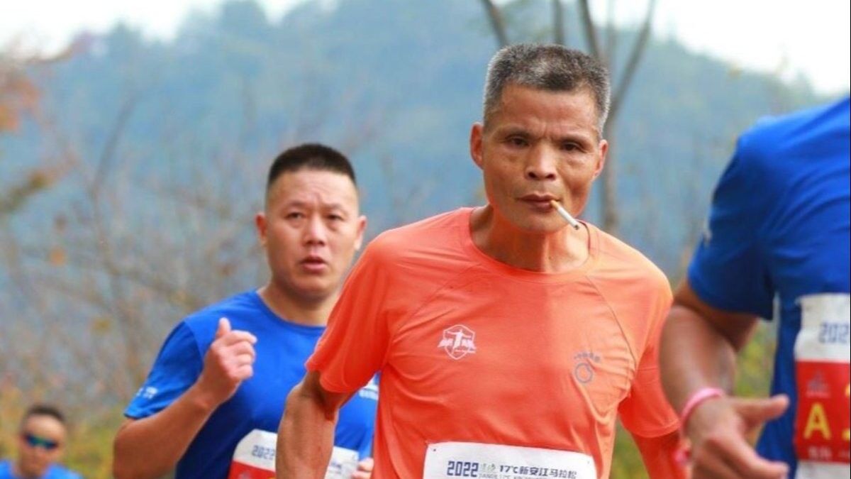 Çin'in Zhejiang eyaletine bağlı Jiande'deki maratona katılan 50 yaşındaki yarışçı, sosyal medyada viral oldu.