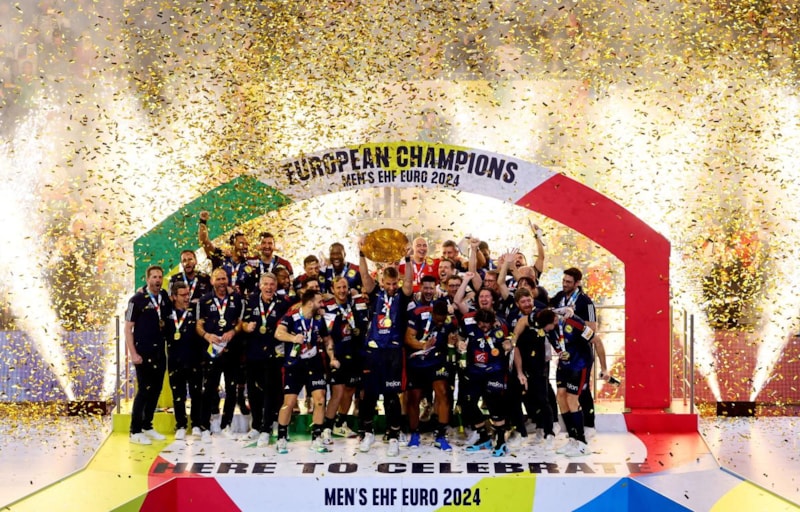 2024 Avrupa Erkekler Hentbol Şampiyonası finalinde Danimarka'yı uzatmalarda 33-31 yenen Fransa, kupaya uzandı.