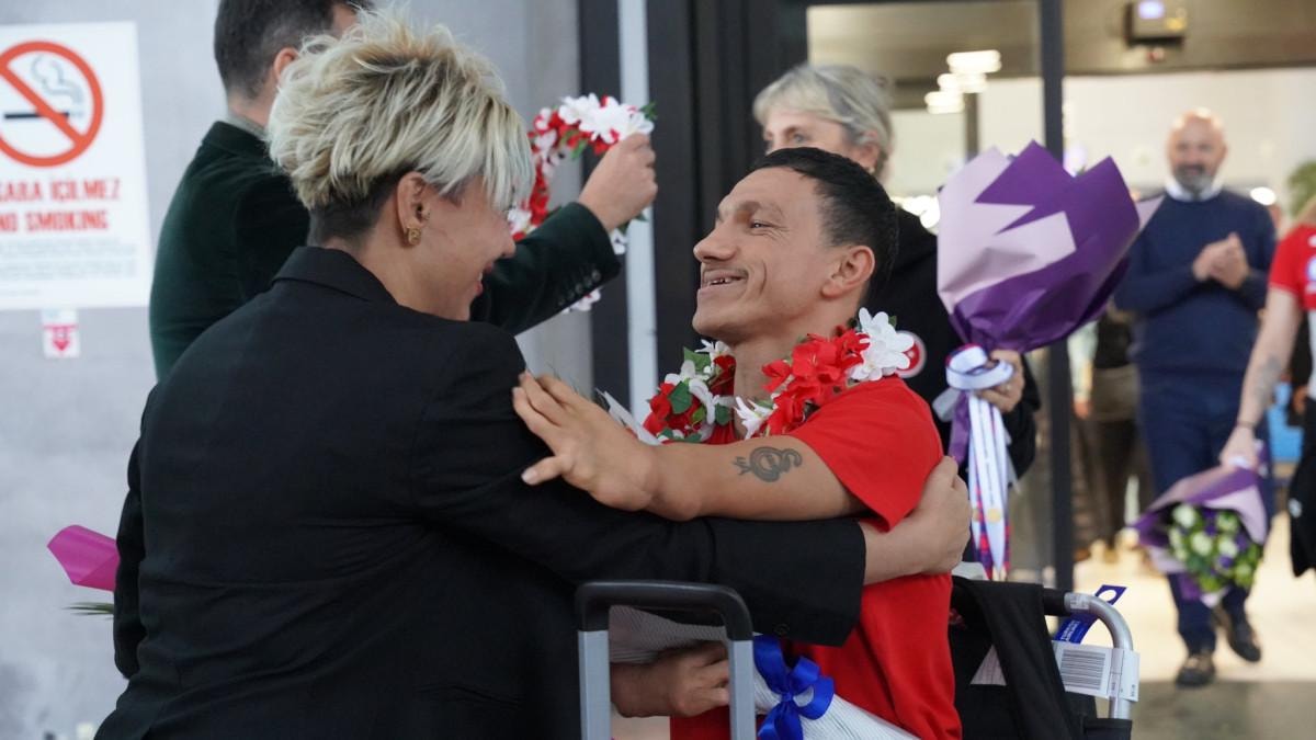 Singapur'dan İstanbul Havalimanı'na gelen ay-yıldızlı kafileyi Türkiye Yüzme Federasyonu yetkililerinin yanı sıra aileleri çiçeklerle karşıladı.