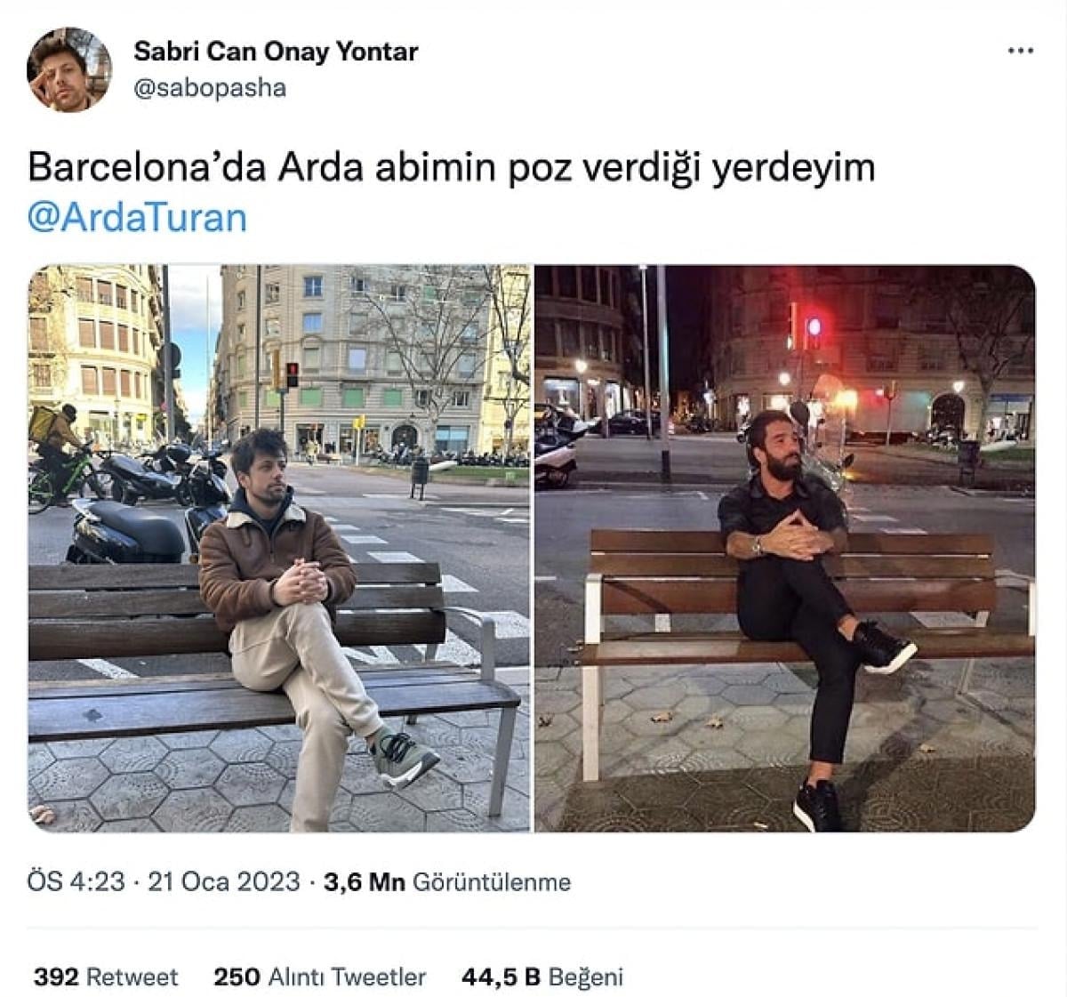 Sık sık eski kulübü Barcelona'nın bulunduğu aynı isimli kente ziyaretler gerçekleştiren Arda Turan, bir bankta çektirdiği derbeder fotoğrafla tüm dikkatleri üzerine çekmişti.