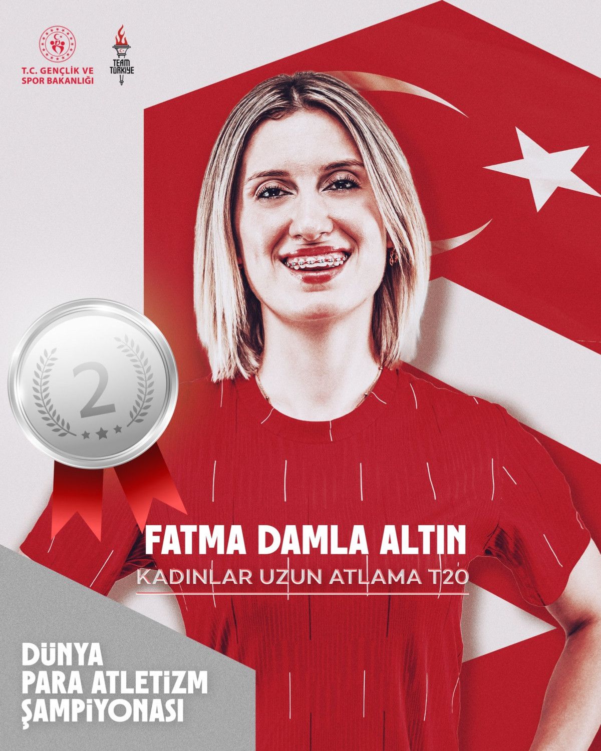 - Milli sporcu Fatma Damla Altın, Hindistan'da düzenlenen Dünya Para Atletizm Şampiyonası'nda gümüş madalya kazandı.