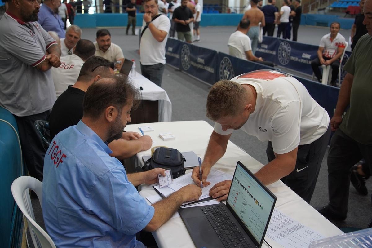 Antalyalı ikiz başpehlivanlar İsmail ve Turan Balaban, 664. Tarihi Kırkpınar Yağlı Güreşleri için Mimar Sinan Spor Salonu'nda kayıtlarını yaptırdı.
