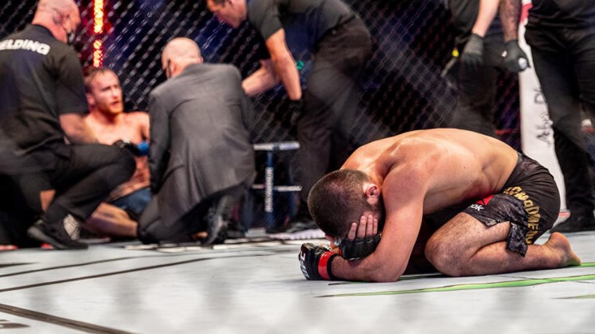 Khabib Nurmagomedov, rakibini nakavt ettikten sonra gözyaşlarına boğuldu.
