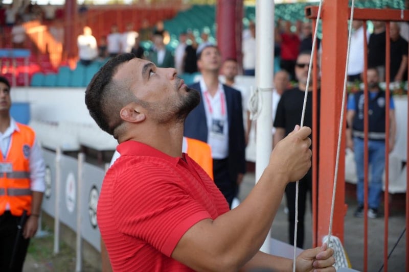 2024 yılının başpehlivanı Yusuf Can Zeybek, Türk bayrağını göndere çekti.