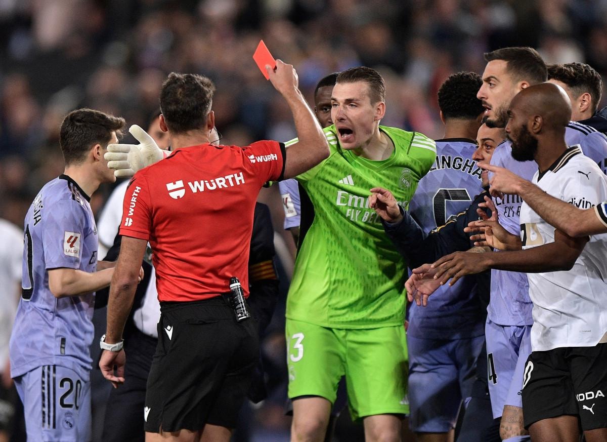 Real Madridli oyuncular, hakem Manzano'ya çok büyük tepki gösterdi. Yoğun tepki üzerine Real Madrid oyuncuları Jude Bellingham ve Antonio Rüdiger kırmızı kart gördü.