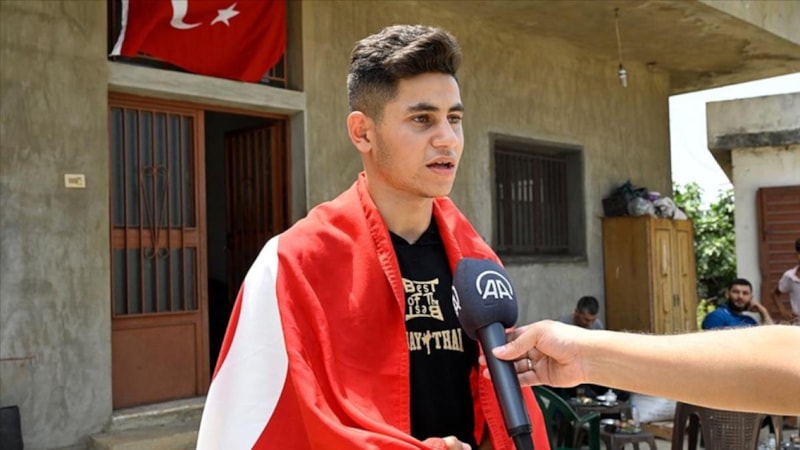 Göçerli'de anne-babası, dedesi ve üç kardeşiyle yaşadığı evin bahçesinde AA muhabirine konuşan Türkmen sporcu Abdullah, "Aslımız Türk olduğu için Türk bayrağı açtım. Çok şükür turnuvada birinci oldum. Türkiye'deki turnuvalarda da yarışmak istiyorum." dedi.