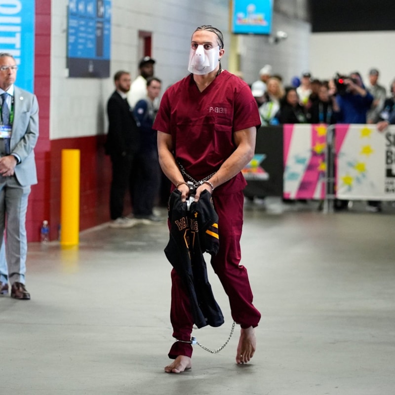 Kaliforniya eyaletinin Santa Clara kentindeki Levi's Stadı'nın koridorlarında maç öncesi görüntülenen Hollins'in tulumunda Colorado’daki yüksek güvenlikli bir hapishaneye atıfta bulunan "Range 13" yazarken 32 yaşındaki oyuncu, ellerindeki kelepçeler ve yüzündeki plastik maskeyle ilgi odağı oldu.