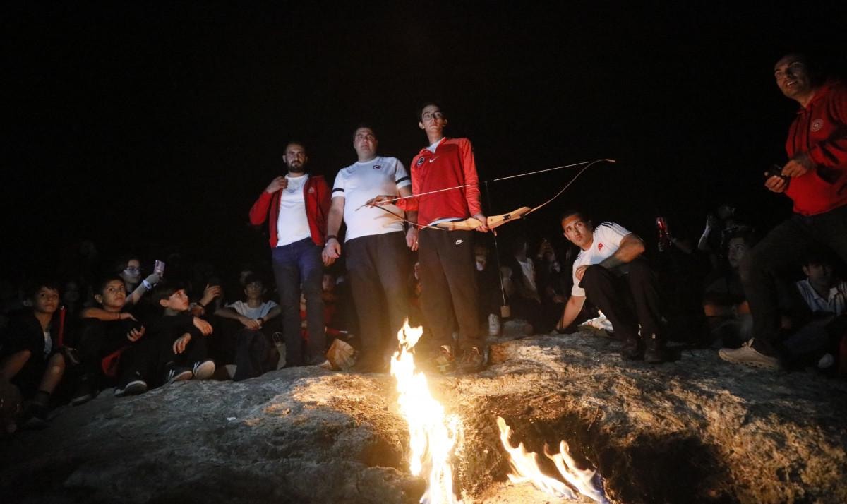 Milli okçu Mete Gazoz, Yanartaş’ın sönmeyen ateşiyle yaktığı okla belirlenen alana atış yaptı. Gazoz’a gençlerin ilgisi yoğun olurken, fotoğraf çektirmek isteyenler uzun süre sıra bekledi.