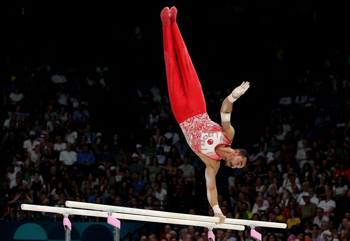 Tokyo 2020 Olimpiyat Oyunları'nda bronz madalya kazanan Ferhat Arıcan, Fransa'nın başkenti Paris'teki Bercy Arena'da gerçekleştirilen erkekler paralel bar aleti finallerinde mücadele etti.