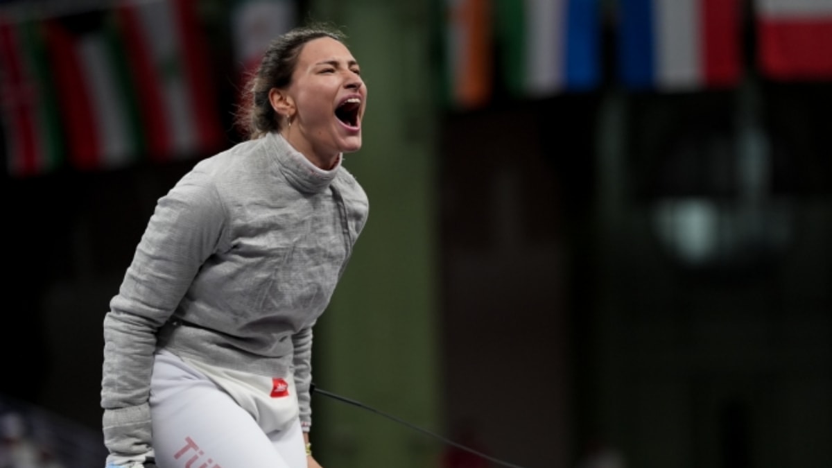 Grand Palais'te yapılan kılıç müsabakalarında Nisanur Erbil, çeyrek finale çıkmak için Fransız Sara Balzer ile karşı karşıya geldi.
