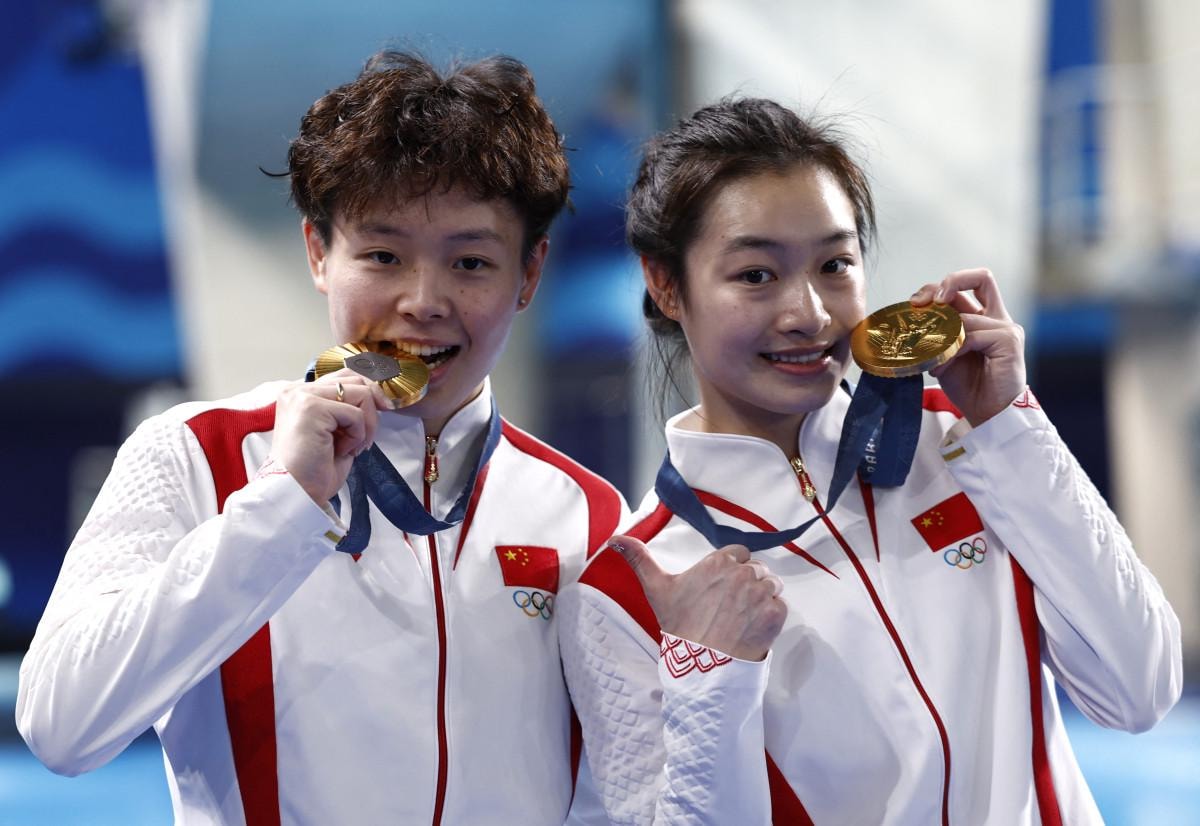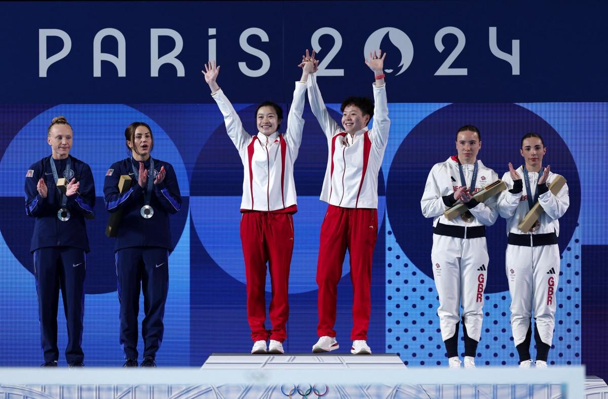 Aquatics Centre'da gerçekleştirilen kadınlar 3 metre senkronize tramplen müsabakalarında Yani Chang ve Yiwen Chen'den oluşan Çin takımı, 337.68 puanla ilk sırayı aldı.