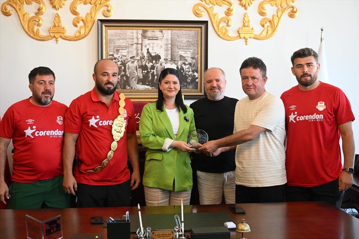664. Tarihi Kırkpınar Yağlı Güreşleri Başpehlivanı Orhan Okulu, Edirne Belediye Başkanı Filiz Gencan Akın'ı ziyaret etmesi sonrası memleketi Antalya'ya hareket etti.