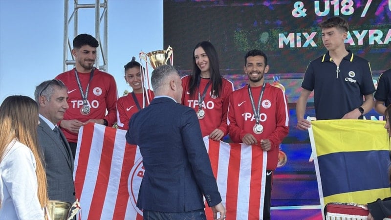 Fenerbahçe Kulübü Başkanı Sadettin Saran, dereceye giren sporculara kupalarını verdi.