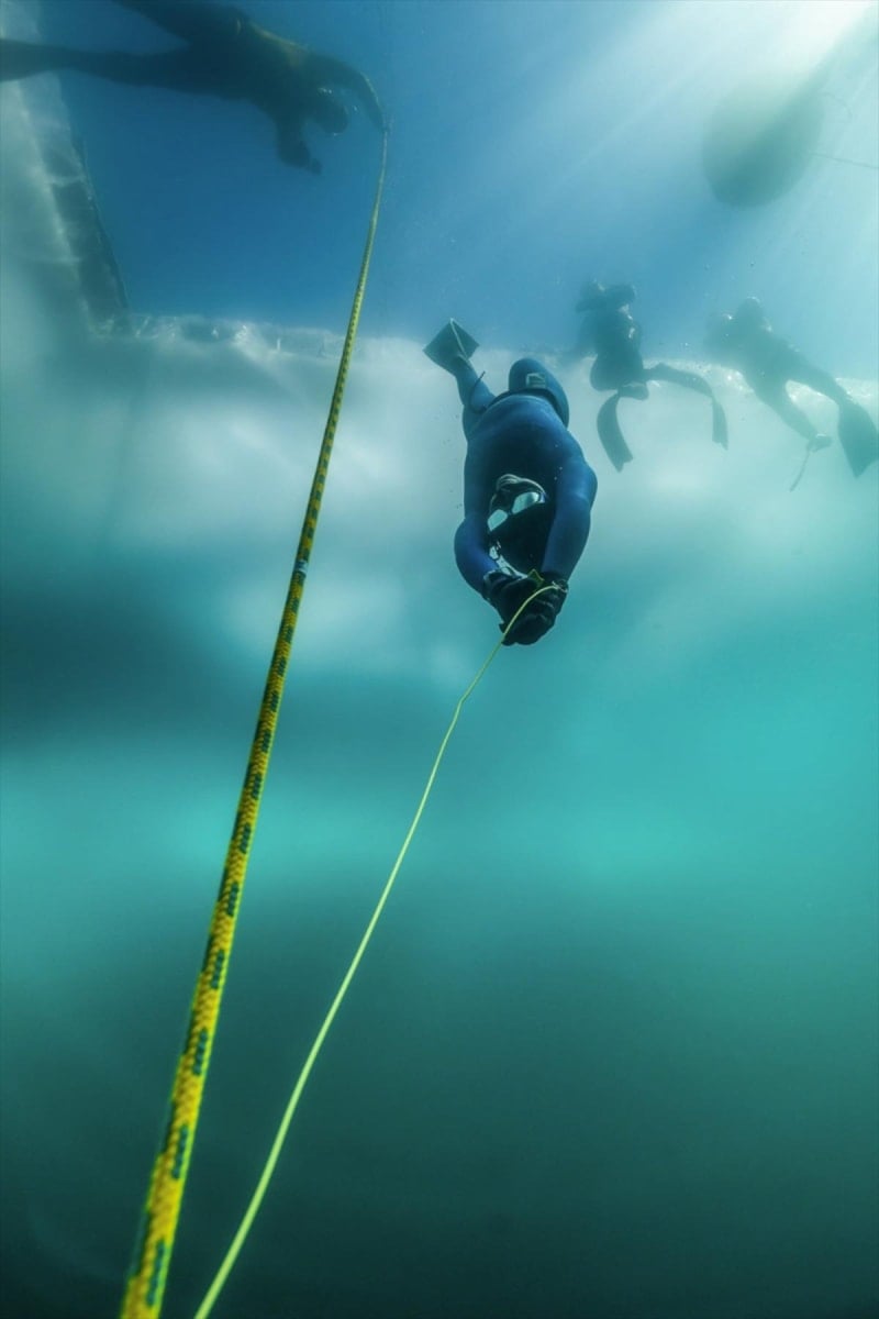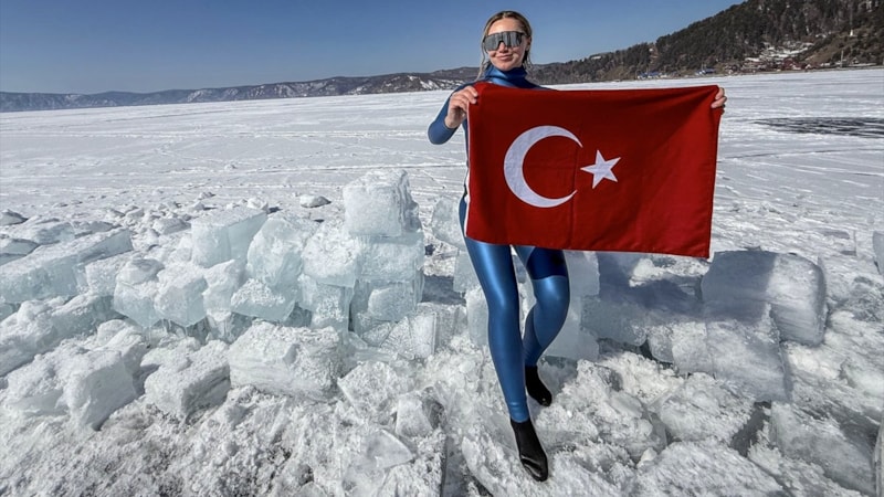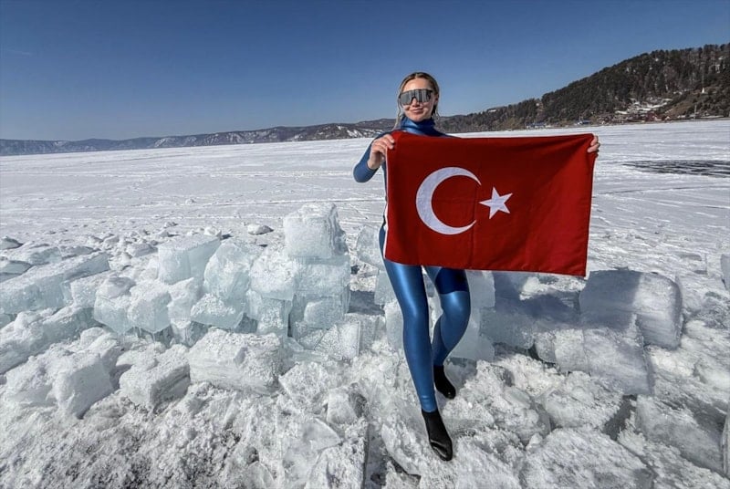 Dünya dalış rekortmeni milli sporcu Şahika Ercümen, iklim krizine dikkat çekmek için dünyanın en derin gölü olan Baykal’da, tek nefeste 50 metre derinliğe indi.