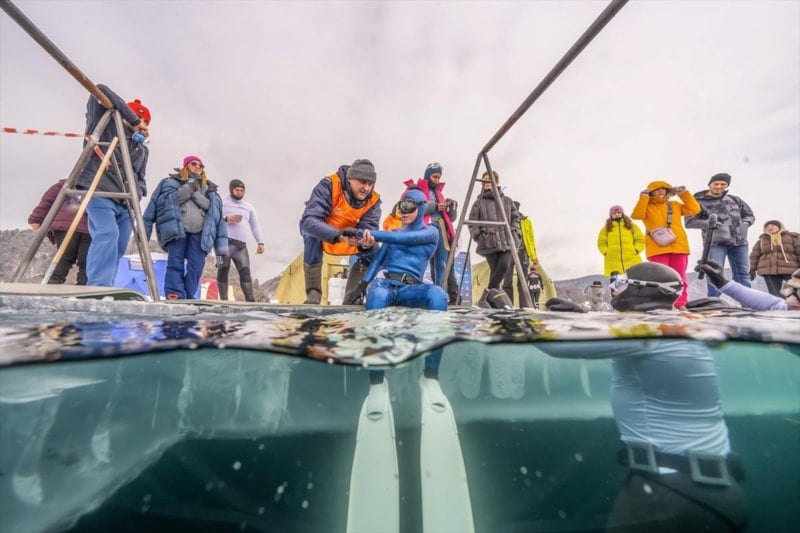 Baykal Gölü’ndeki bu dalışıyla da, insanlığın buzulların yok oluşuna seyirci kalmaması gerektiğini bir kez daha gözler önüne serdi.