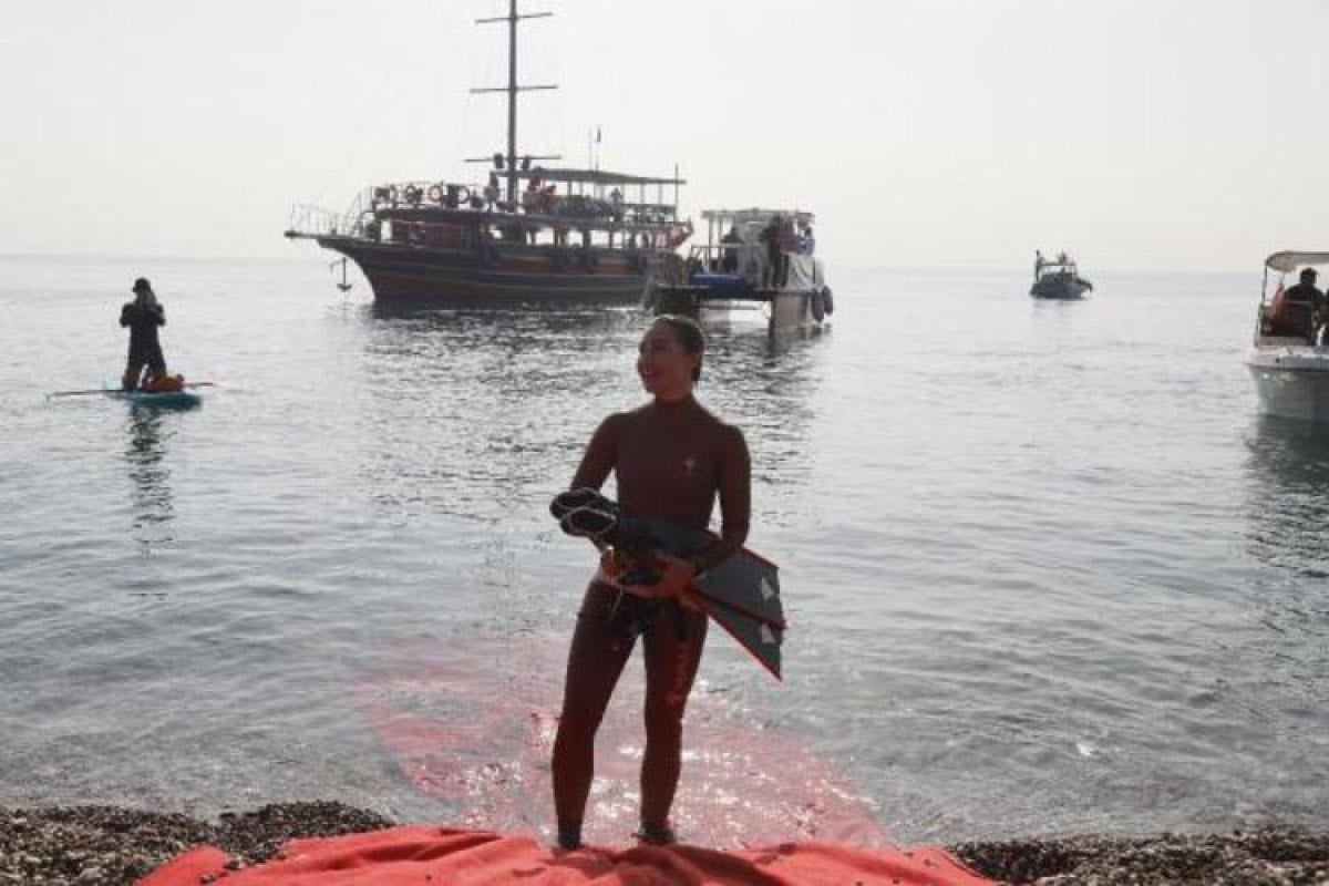Milli Sporcu ve Serbest Dalış Rekortmeni Şahika Ercümen de Konyaaltı Sahili'nden tekneyle açılıp, serbest dalış gerçekleştirdi.