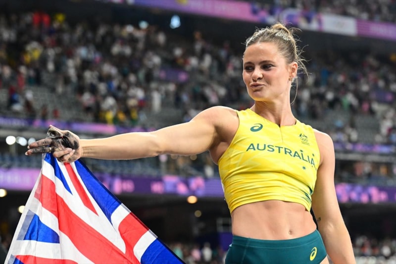 Paris 2024'ün kadınlar sırıkla atlamadaki Avustralyalı altın madalyalı sporcusu Nina Kennedy de Dikeç'in popüler duruşunu yaptı.