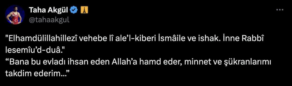 Güreşi bırakan başarılı sporcuyu ise sevindiren bir gelişme yaşandı. Olimpiyat, dünya ve Avrupa şampiyonu milli güreşçi Taha Akgül, baba oldu.
