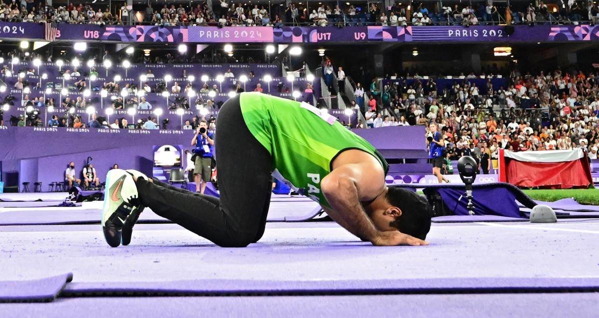 Paris'teki Stade de France'ta atletizm erkekler cirit atmanın finallerinde Pakistanlı sporcu Arshad Nadeem de tarihi başarıya imza attı.