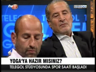 Telegol programında dün gece ilginç anlar yaşandı. Moderatör Serhat Ulueren ile Gökmen Özdanak yoga yaptı.