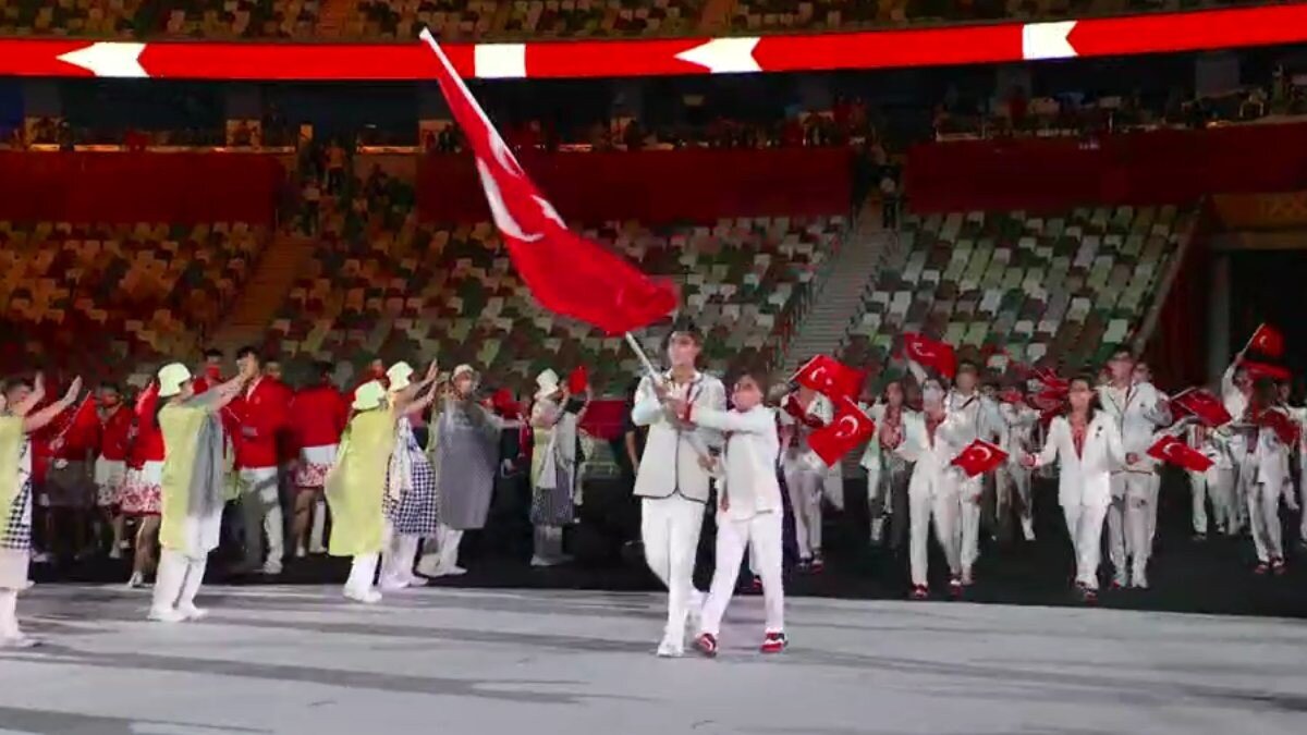 2020 Tokyo Olimpiyat Oyunları'nın açılış seremonisinde Türk bayrağını, milli yüzücüler Merve Tuncel ile Berke Saka taşıdı.