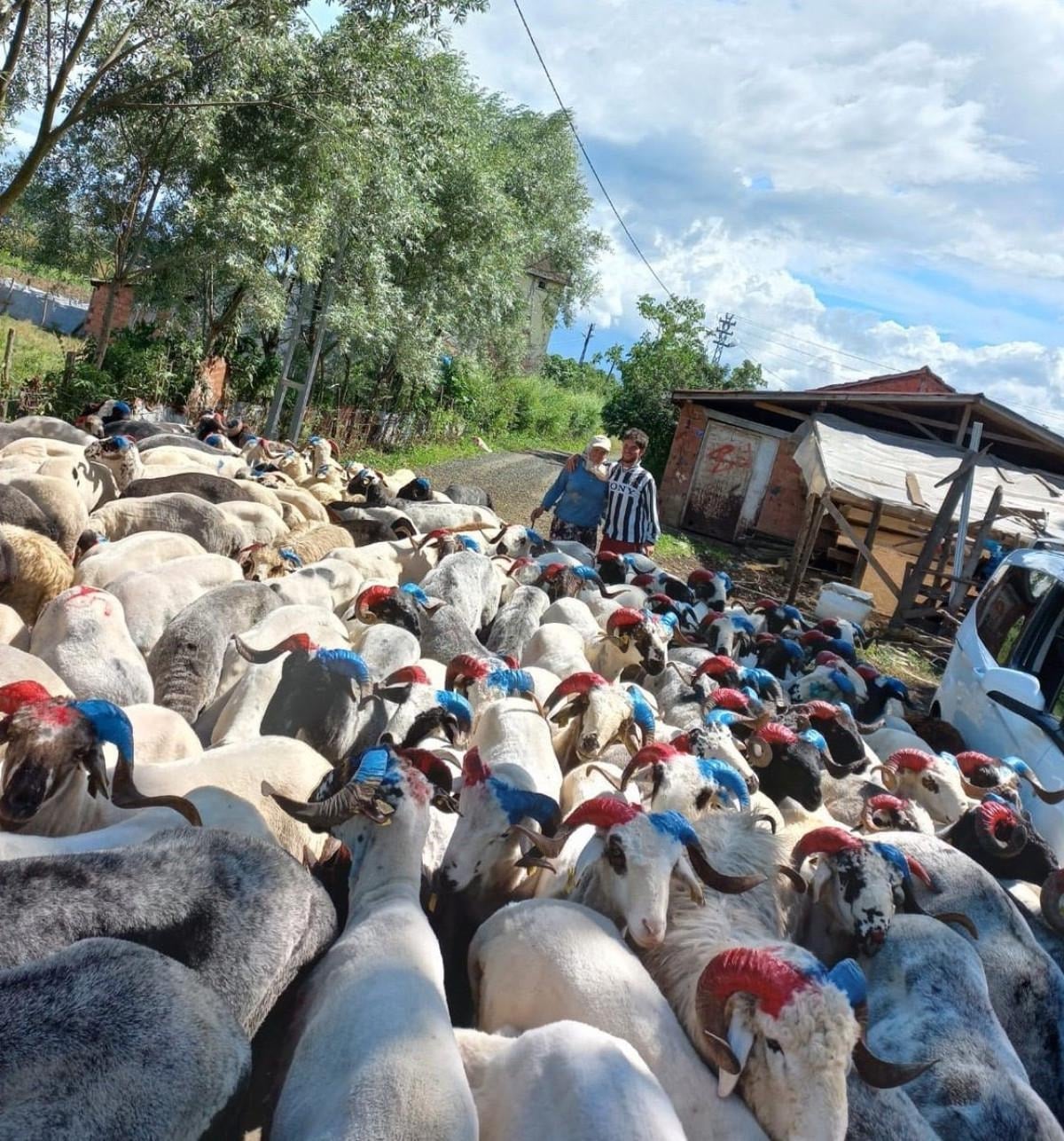 Trabzonspor fanatiği olan besici Ramazan Aysoy, yaklaşık 2 bin 500 tane keçi ve koçunun boynuzunu bordo-maviye boyadı.