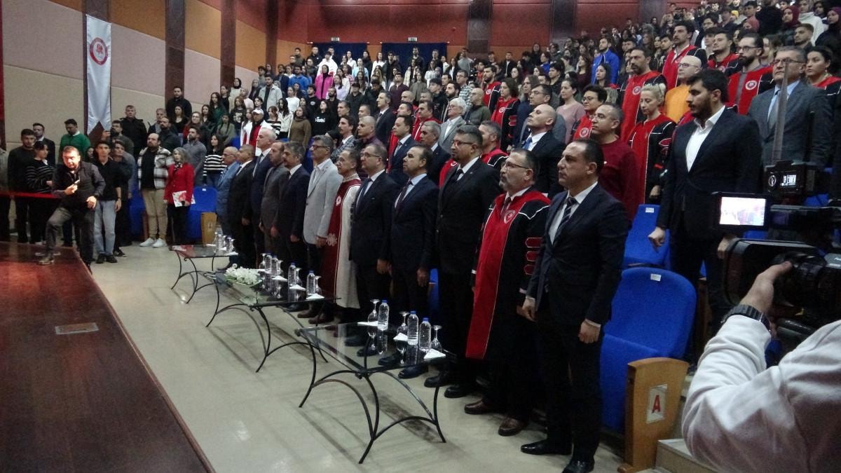 İstiklal Marşı ve saygı duruşuyla başlayan ve Güzel Sanatlar Fakültesi'nin müzik dinletisiyle devam eden etkinlikte, Yusuf Dikeç'e 'Fahri Doktora Payesi' takdim edildi.