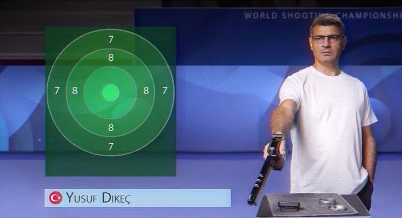 Ekipman kullanmadan rahat bir şekilde yaptığı atışlarla takım arkadaşıyla birlikte finalde mücadele ederek gümüş madalya kazanan Yusuf Dikeç'in fotoğrafı ve video görüntüleri sosyal medyada milyonlarca etkileşim almıştı.