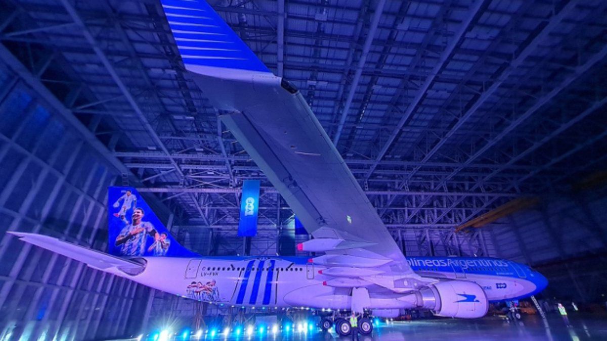Buenos Aires'te bulunan uçak, Ezeiza Havaalanı'ndaki hangarda kameralarla buluştu. Airbus A330-200, Arjantin Milli Takım oyuncularının fotoğrafları ile süslendi. Lionel Messi, Angel Di Maria ve Rodrigo de Paul'un dev fotoğraflarının konulduğu uçak, Arjantin taraftarlarını Katar'a taşıyacak.