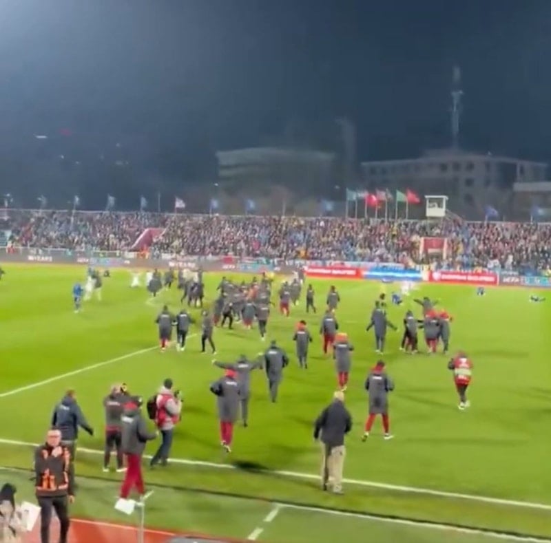 Maçın bitiş düdüğü ile birlikte büyük sevinç yaşayan protokol sevinç çığlıkları atarken, saha kenarındaki teknik heyet ve oyuncular da saha içindeki oyunculara koşarak sevinç gösterisinde bulundu.