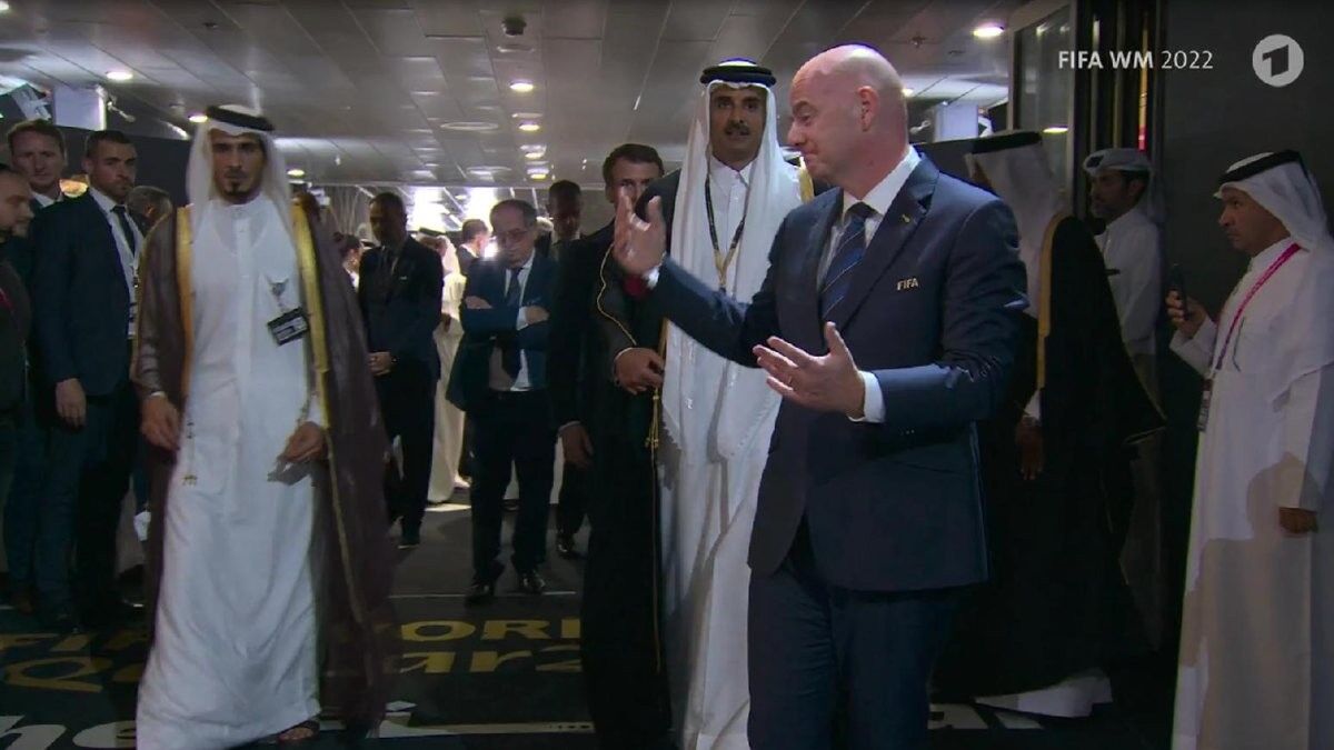 Ancak Katar Emiri Şeyh Temim Bin Hamed Al Sani, Macron'un önüne geçerek yürümesine izin vermedi. Şaşkına dönen Macron ve Infantino'nun yüz ifadeleri, kameralara yansıdı.