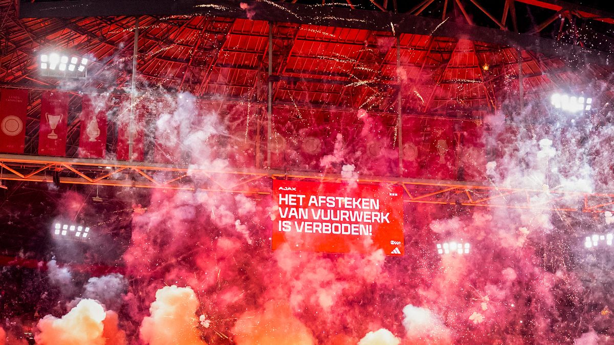 Hollanda 1. Futbol Ligi'nin 14. haftasındaki Ajax-Groningen maçı, taraftarın sahaya meşale ve havai fişek atması nedeniyle tatil edildi.