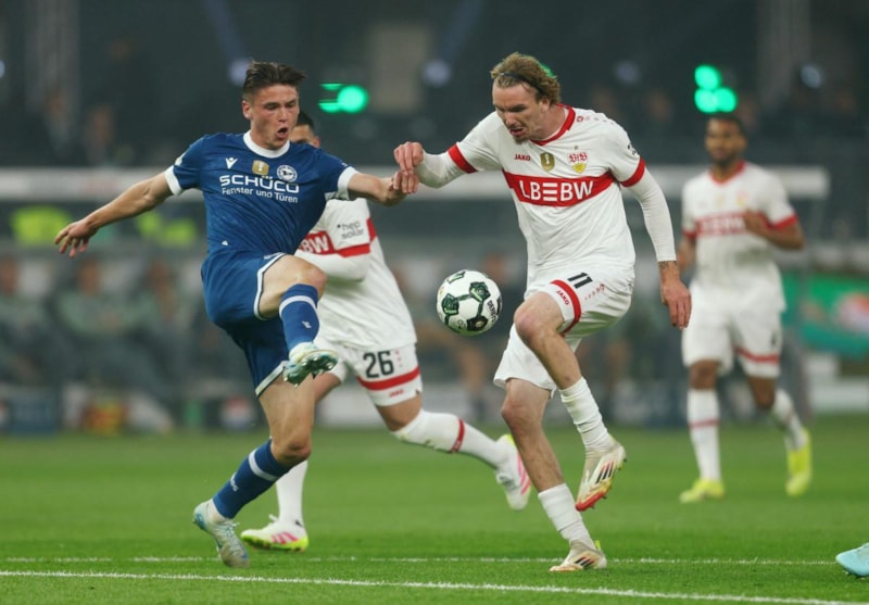 Arminia Bielefeld, Alman forveti Julian Kania ile 82. dakikada ve 85. dakikada Stuttgart'ın Alman defansı Josha Vagnoman'ın kendi kalesine attığı gollerle 3 dakikada farkı 2'ye indirdi.