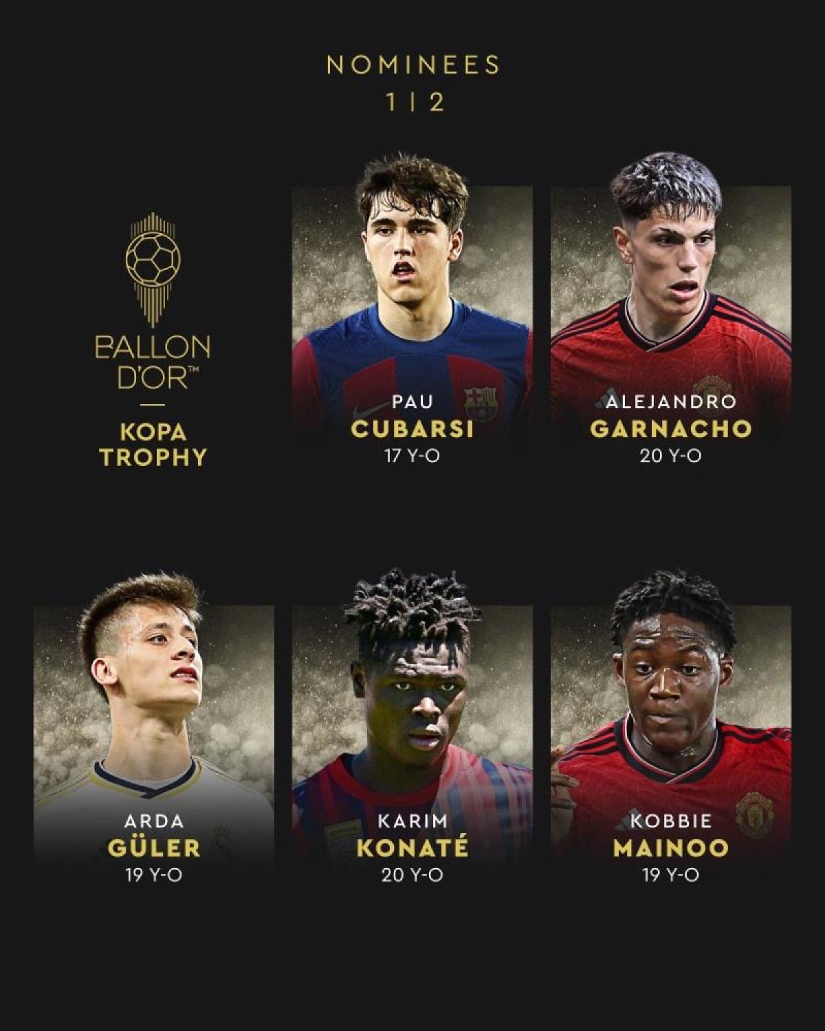 Pau Cubarsi, Alejandro Garnacho, Arda Güler, Karim Konate, Kobbie Mainoo, Joao Neves, Savinho, Mathy Tel, Lamine Yamal, Warren Zaire-Emery.