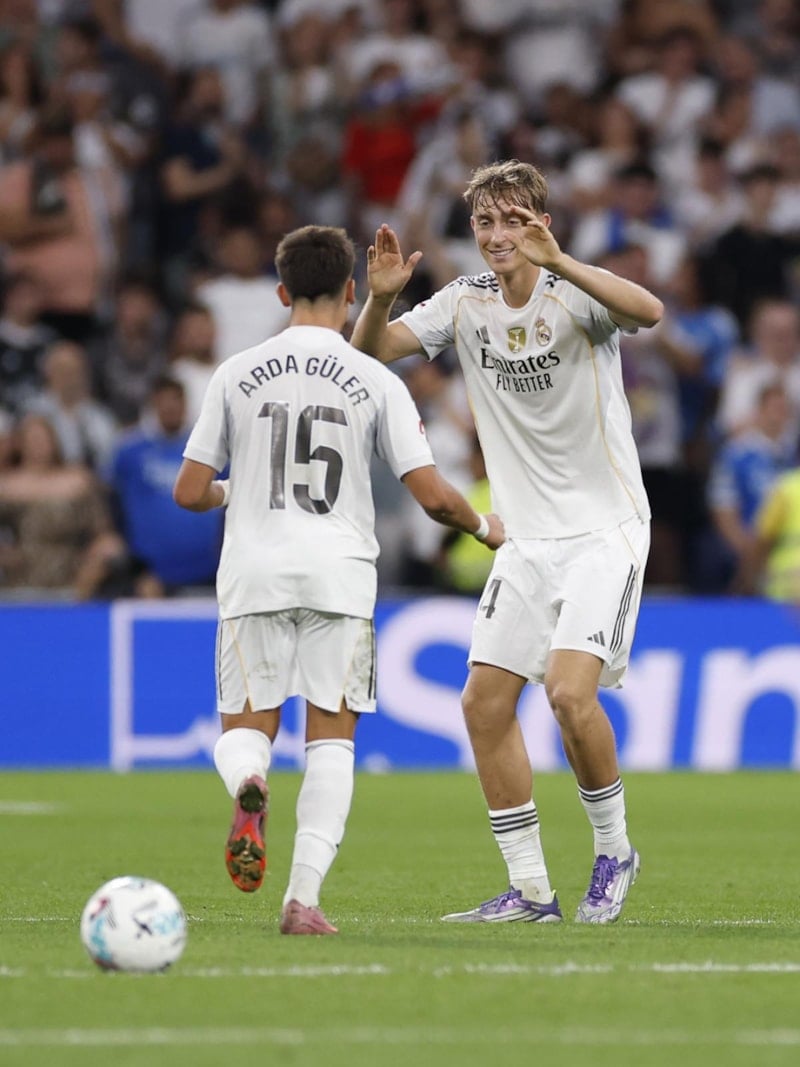 Ev sahibi Real Madrid 37. dakikada sahneye çıkan Arda Güler’le eşitliği yakaladı. Milli yıldız, kale önünde yaptığı kafa vuruşuyla topu ağlara gönderdi.